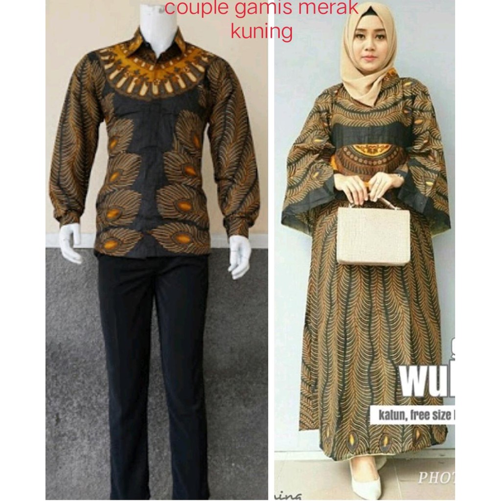 Baju Couple Batik Sarimbit Gamis Batik Keluarga Warna Gold Kuning